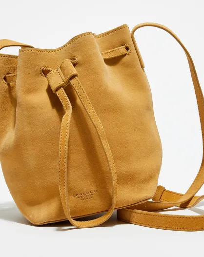 Petit Sac bourse en Velours de Cuir Maeva nougat - 21x14x14 cm