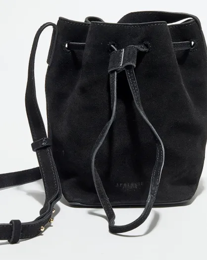 Petit Sac bourse en Velours de Cuir Maeva noir - 21x14x14 cm