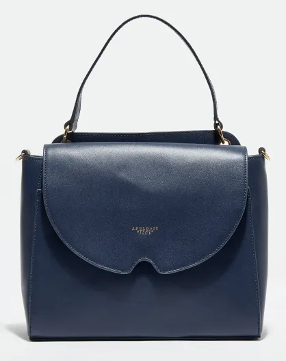 Sac à main en Cuir Elise bleu marine - 34x31x14 cm