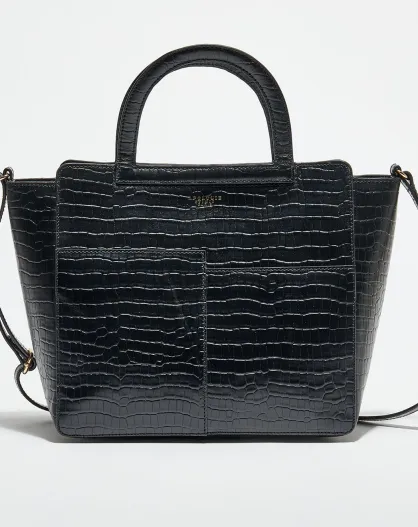 Sac à main en Cuir croco Clea noir - 25x27x13 cm