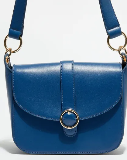 Sac porté épaule en Cuir Youna pétrole - 18x22x9 cm
