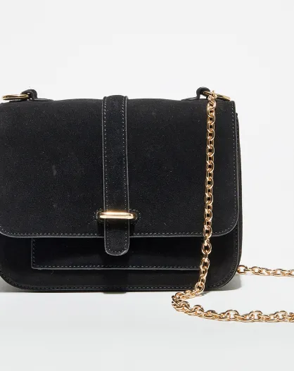 Petit Sac bandoulière en Velours de Cuir Claire noir - 16x20x8 cm