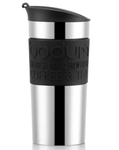 Mug de voyage isotherme en inox double paroi couvercle à clapet noir - 0.35 L