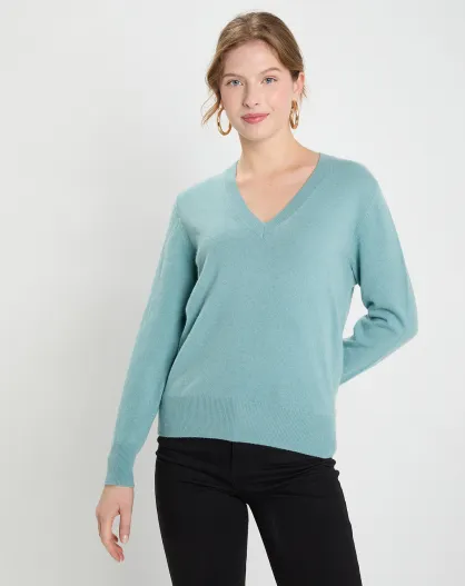 Pull 100% Cachemire Zocon col V bleu/vert