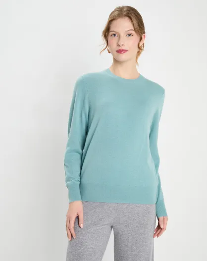 Pull 100% Cachemire Zabri col rond bleu/vert