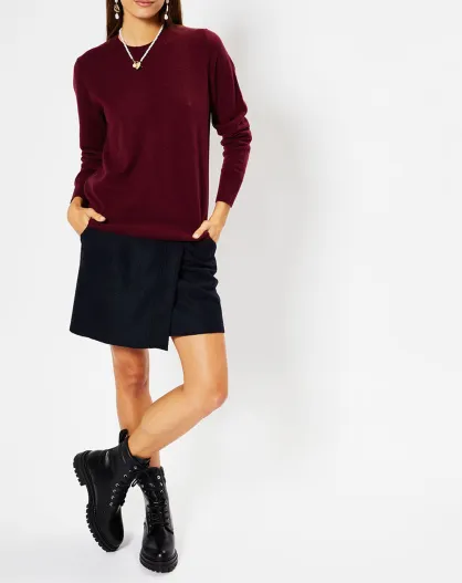 Pull 100% Cachemire Zabri col rond rouge foncé