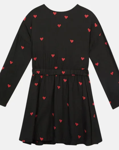 Robe évasée Tulle imprimé cœurs noir/rouge