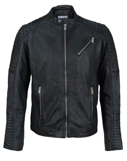 Blouson Biker en Cuir Junior noir