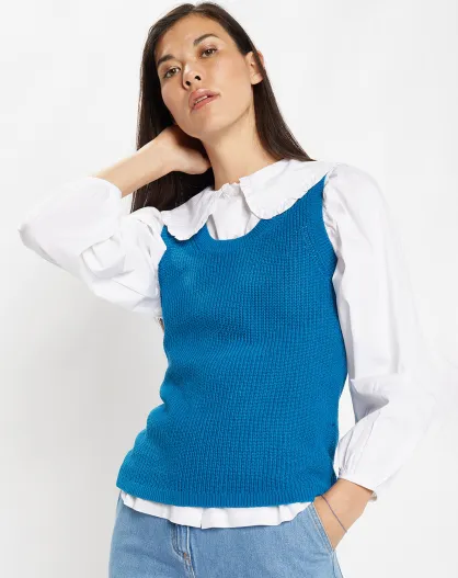 Pull sans manches en Maille mélangée Fido bleu moyen