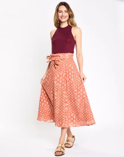 Jupe longue Georgie imprimé orange/écru