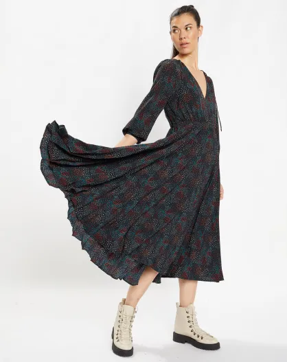 Robe longue et plissée Gaia noire