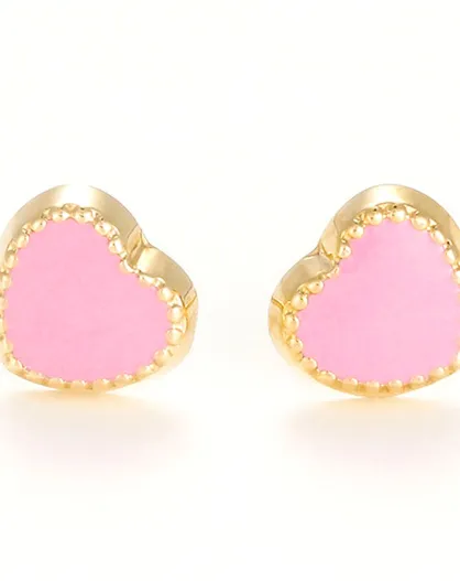 Boucles d'oreilles enfant Joli Coeur Email rose or jaune