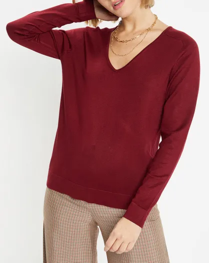 Pull en Maille fine col V Fya bordeaux