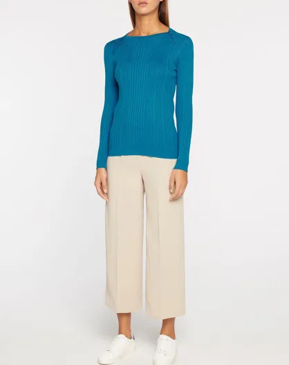 Pull en Maille côtelée col bateau Fya bleu moyen