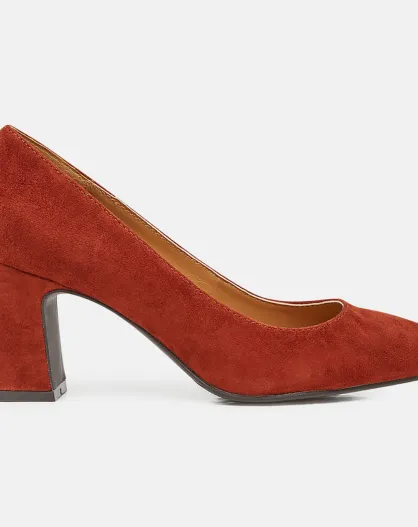Escarpins en Velours de Cuir Louis XV orange brique - Talon 7.5 cm