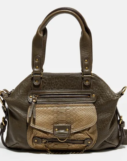 Sac à main en Cuir d'Agneau & Python Mini Ode kaki - 32x22x3 cm