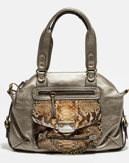 Sac à main en Cuir d'Agneau & Python Mini Ode bronze natural - 33x22x3 cm