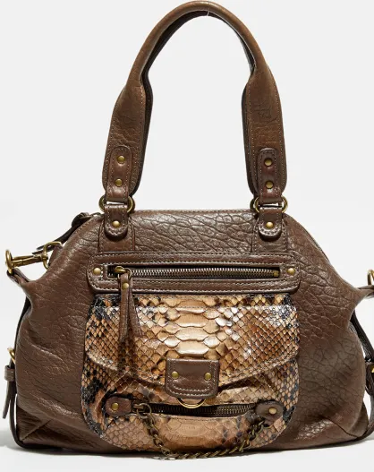 Sac à main en Cuir d'Agneau & Python Mini Ode élephant natural - 34x22x3 cm