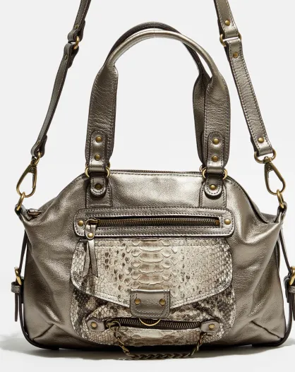 Sac à main en Cuir d'Agneau & Python Mini Ode bronze métal gris - 35x22x3 cm