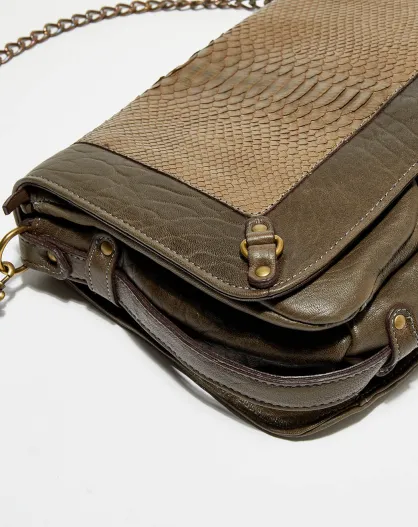 Sac bandoulière en Cuir d'Agneau & Python Seren kaki - 25x11x16.5 cm