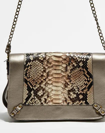 Sac bandoulière en Cuir d'Agneau & Python Seren bronze natural - 25x11x16.5 cm