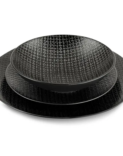Service en Grès Tweed noir - 18 pièces
