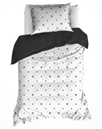 Parure housse de couette percale de coton Knight noir/blanc