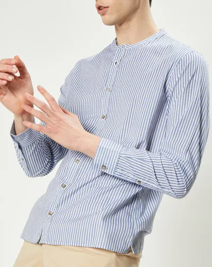 Chemise regular en Popeline Theotime rayée bleu/blanc