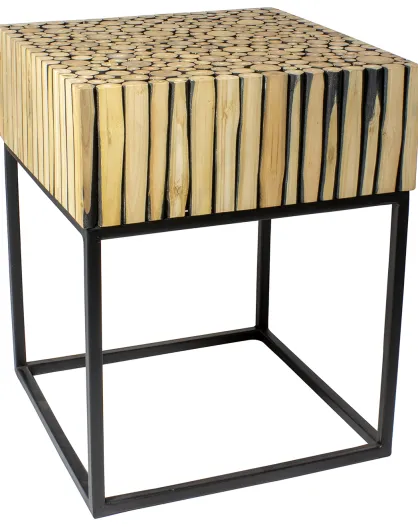 Table d'appoint en branche de teck tahaa noir/beige - 40x40x50 cm