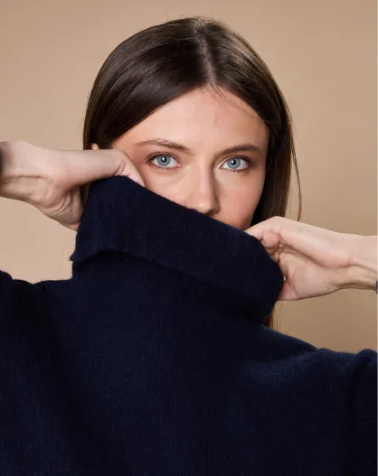 Pull 100% Cachemire 4 fils Audrey col roulé bleu marine