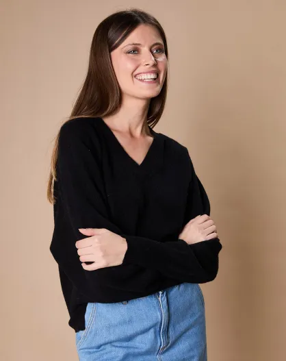 Pull 100% Cachemire 4 fils Romy col V profond noir
