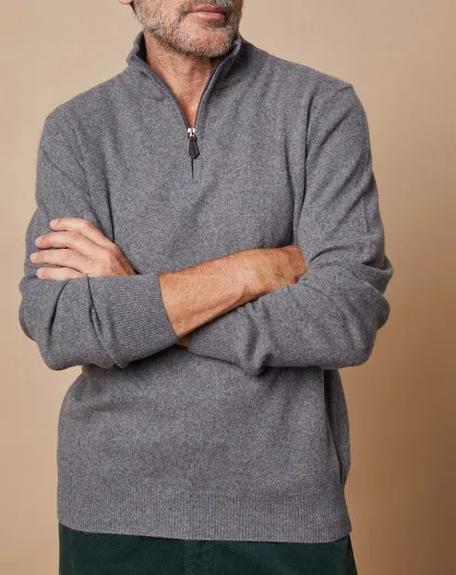 Pull 100% Cachemire 4 fils John col camionneur gris anthracite/marine