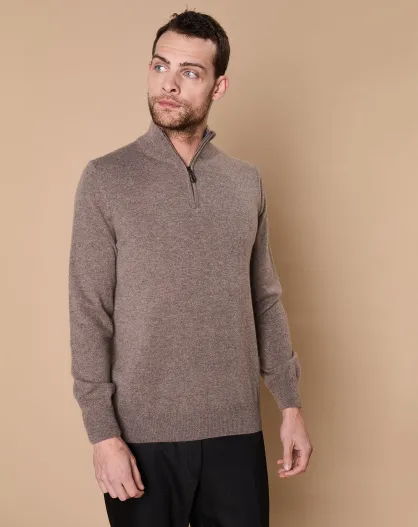 Pull 100% Cachemire 4 fils John col camionneur taupe/bleu