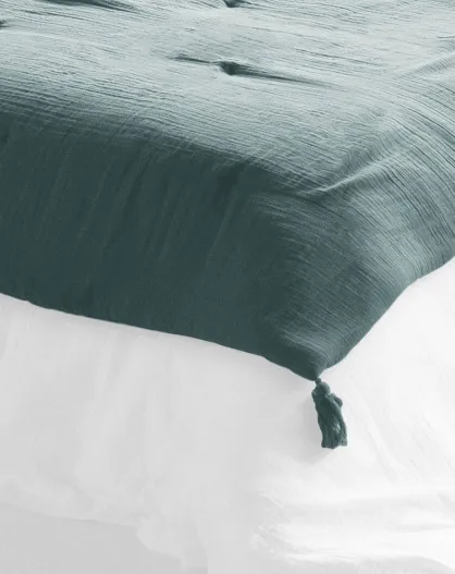 Bout de lit Gaze de Coton Gaïa bleu - 90x200 cm