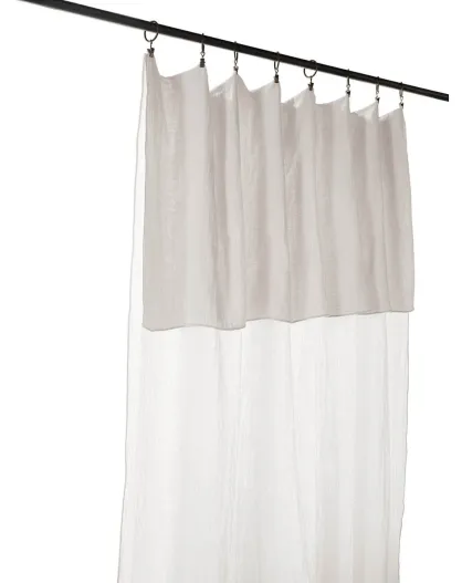 Rideau ajustable + 8 anneaux pince Lin lavé Soline Craie blanc