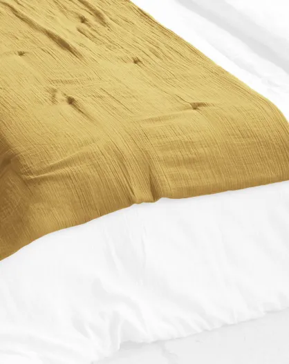 Édredon Gaze de Coton Gaïa Safran jaune - 150x150 cm