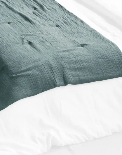 Bout de lit Gaze de Coton Gaïa bleu - 150x150 cm