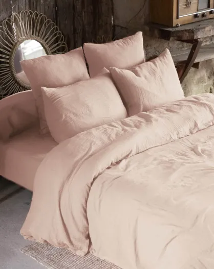 Housse de couette Gaze de Coton Gaïa Guimauve rose