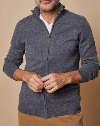 Gilet zippé 100% Cachemire John gris foncé
