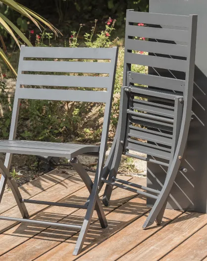 2 Chaises de jardin pliantes Marius en aluminium grises - 46x41x82 cm