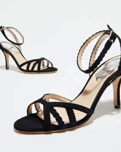 Sandales en Velours de Cuir Stella noires - Talon 9.5 cm