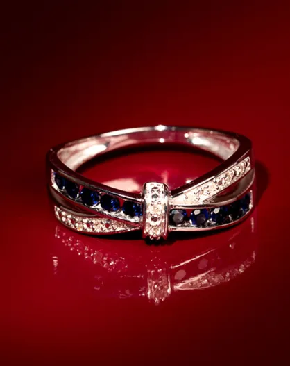Bague Starky Diamant 0.045 ct & Saphir 0.8 ct or blanc