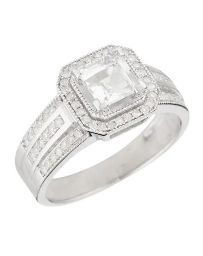 Bague Remban Diamant 0.32 ct & Topaze blanche 1.41 ct or blanc