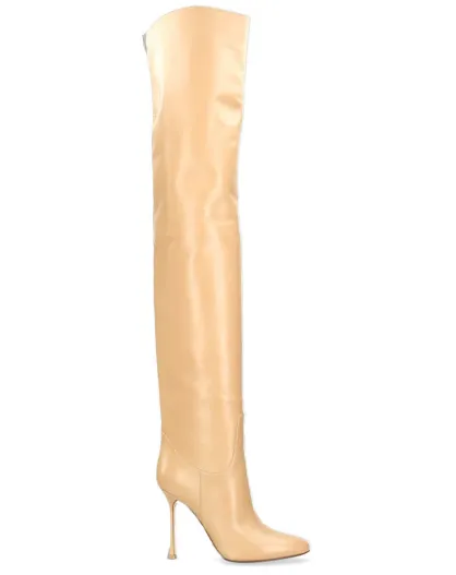 Cuissardes en Cuir Zip beiges - Talon 11 cm