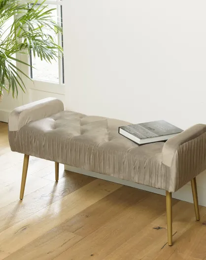 Banc de lit en velours Albane taupe - 103x40x53 cm
