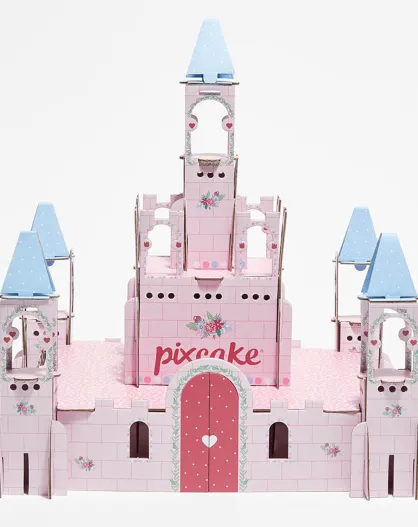 Présentoir à gâteau Château Princesse à monter rose - 32x32 cm