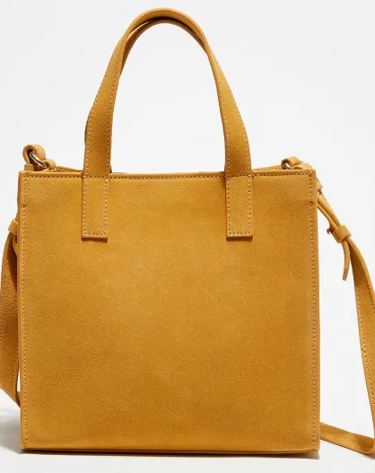 Sac à main en Velours de Cuir S63 ocre - 21x23x12 cm