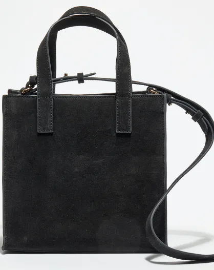 Sac à main en Velours de Cuir S63 noir - 21x23x12 cm