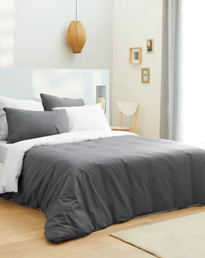 Parure housse de couette, drap housse & taies anthracite/blanc