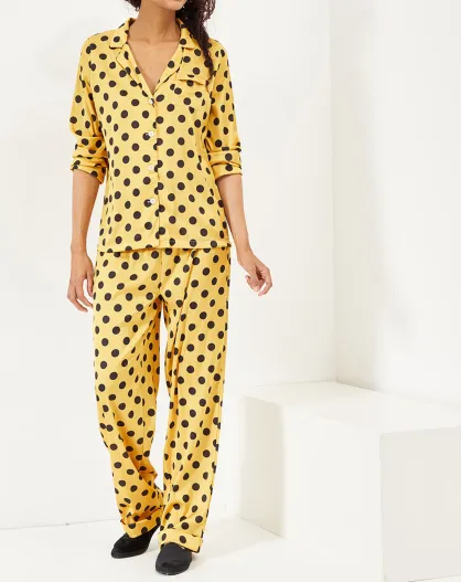 Pyjama satiné Emile à pois ocre/noir